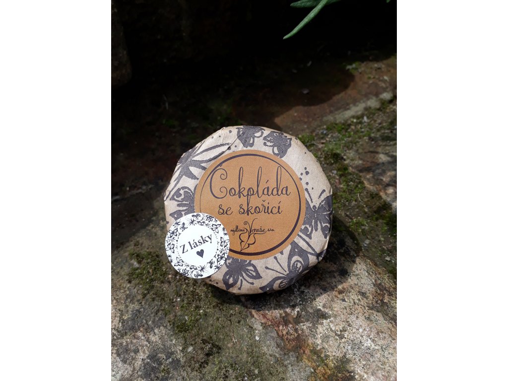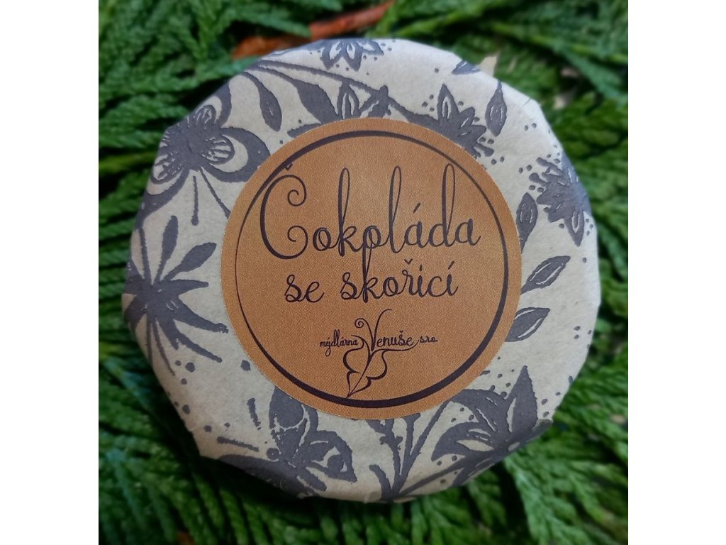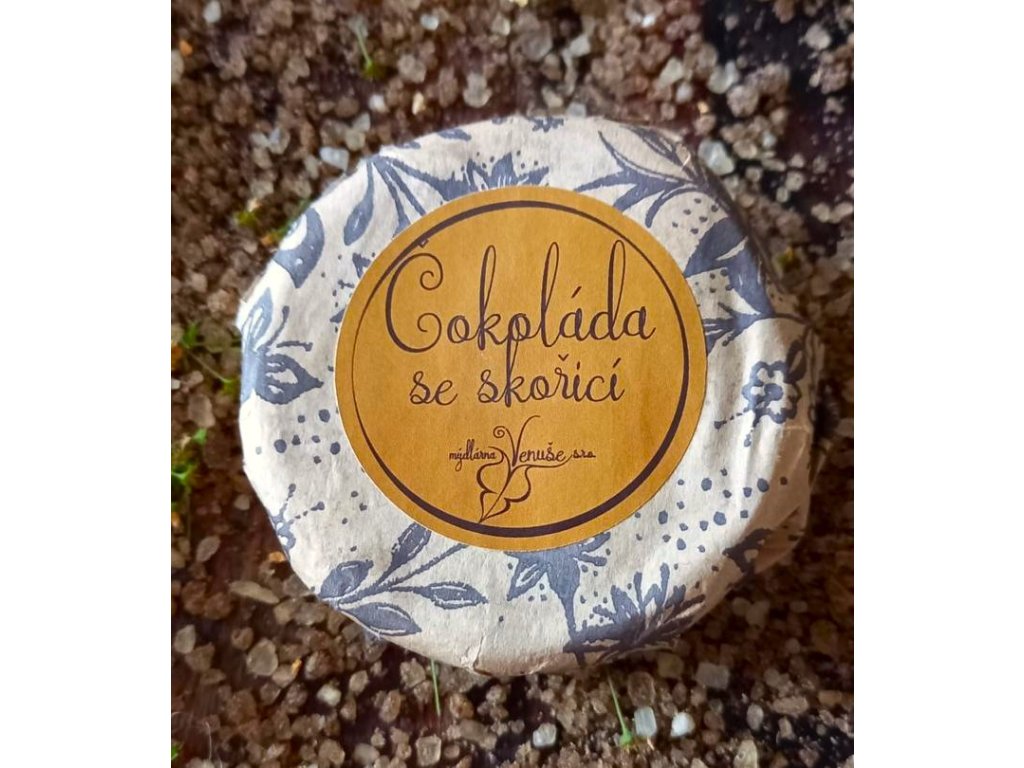 Luxusní přírodní tuhé mýdlo s vůní čokolády a mleté skořice. Bude Vás hýčkat vysokým podílem kakaového a bambuckého másla, raw kakaovým práškem a přítomnost mleté skořice v kombinaci se skořicovým éterickým olejem jemně prohřeje Vaši pokožku. 100% vegan