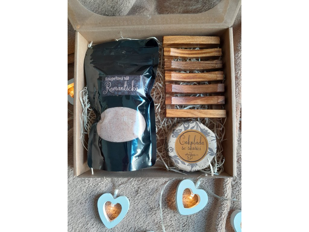Sada s Romantickou solí do koupele a mýdlem Čokoláda se skořicí
